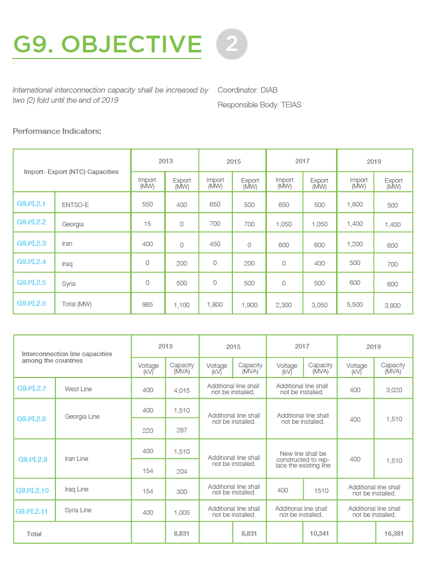 International interconnection capacity shall be increased by two (2) fold until the end of 2019.